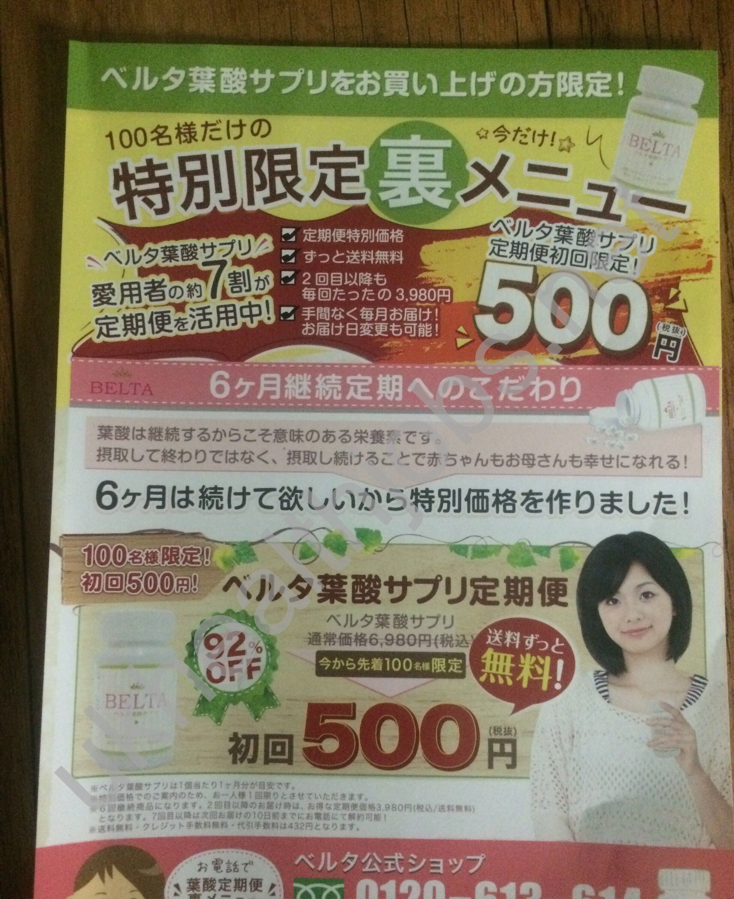 ベルタ葉酸サプリを購入した人だけ定期便の初回が500円になるというお知らせ!